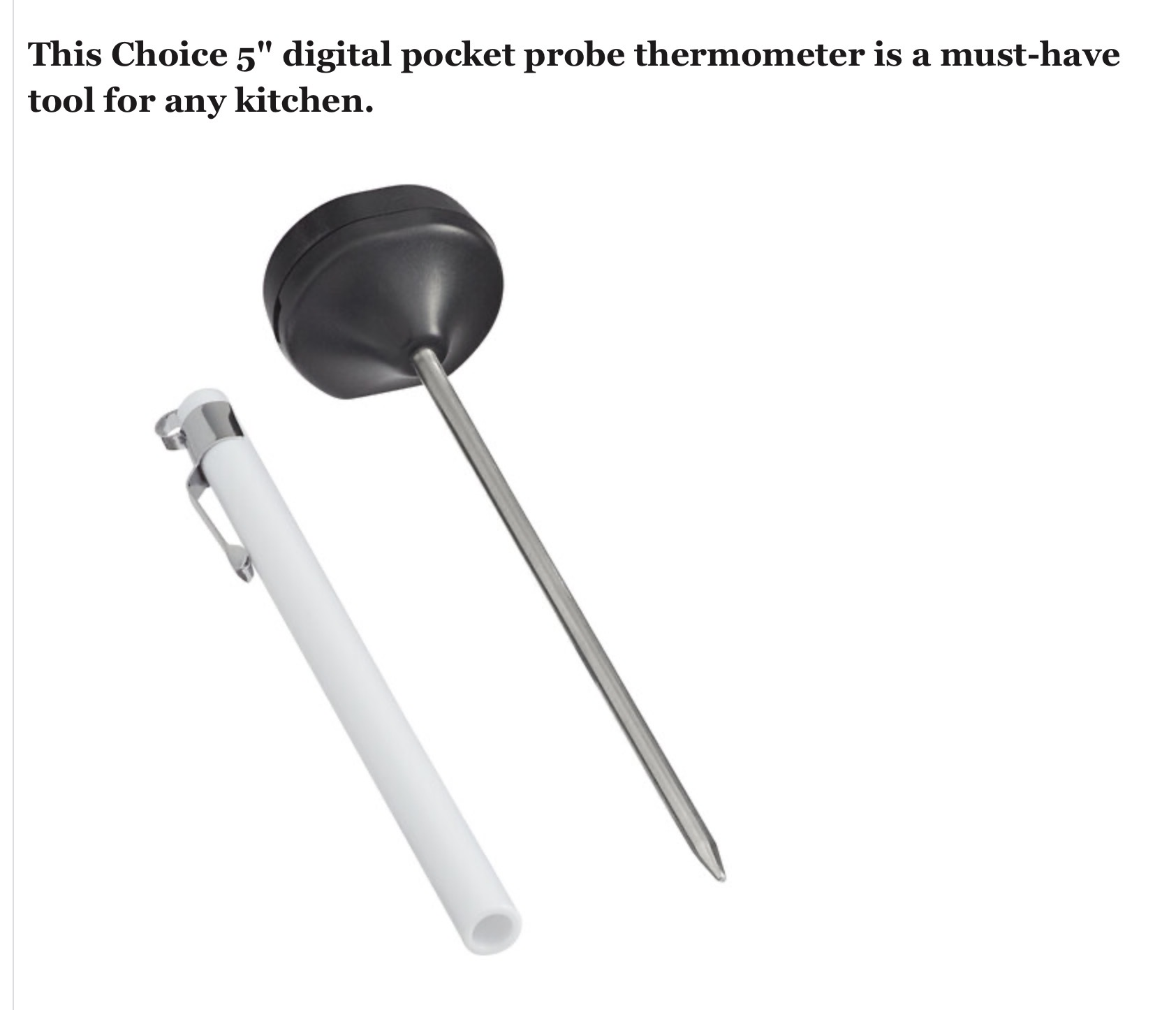 This Choice 5″ digital pocket probe thermometer is a must-have tool for any kitchen.